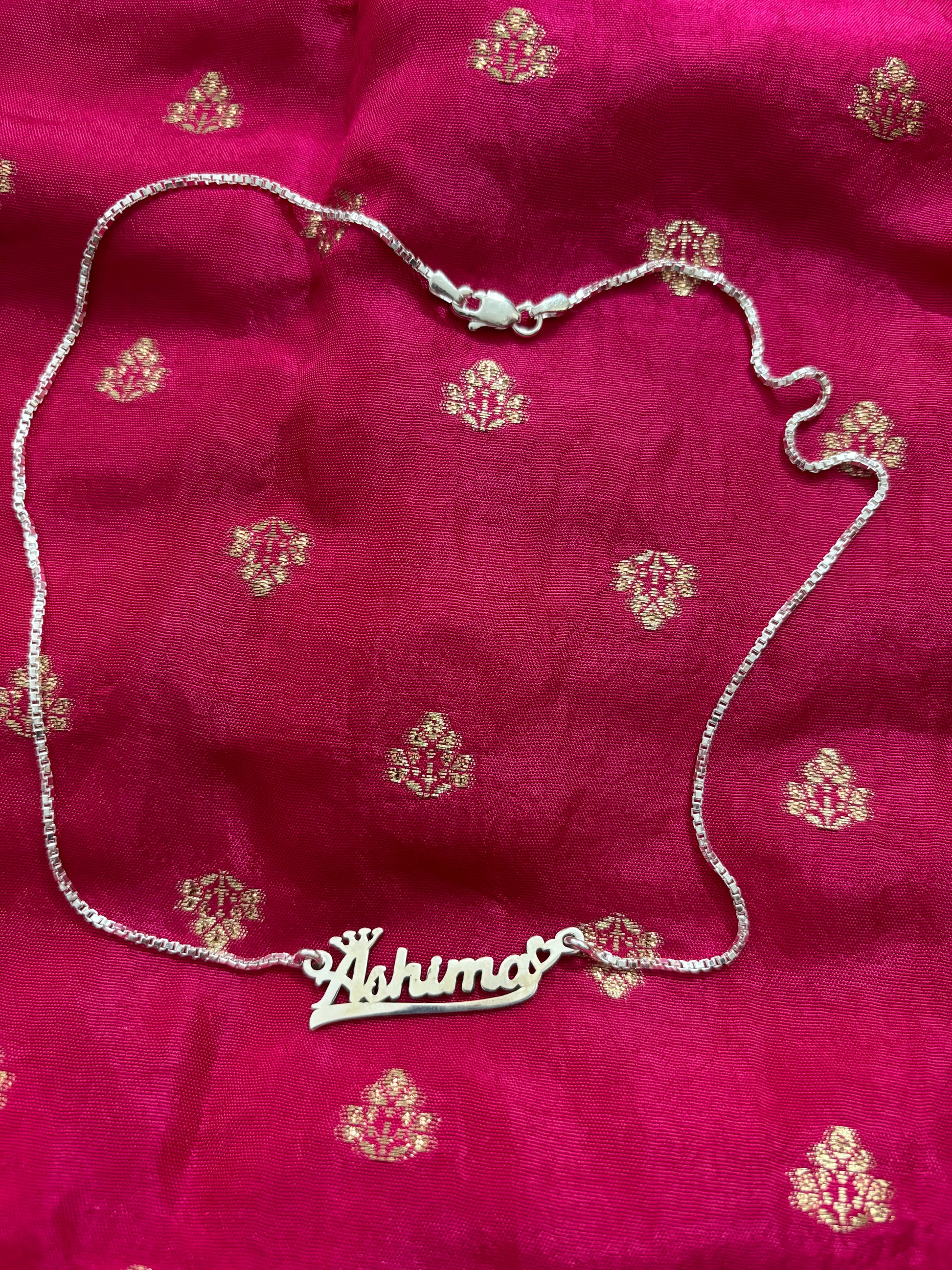CustLooking for the perfect gift for a special occasion? Look no further! This Pure Silver Customised Chain with Name Pendant is not only amazing looking and comfortable, but also versatile enough for anyone to wear - male, female, and even kids! Dress up your loved ones' outfits with this unique and thoughtful accessory.