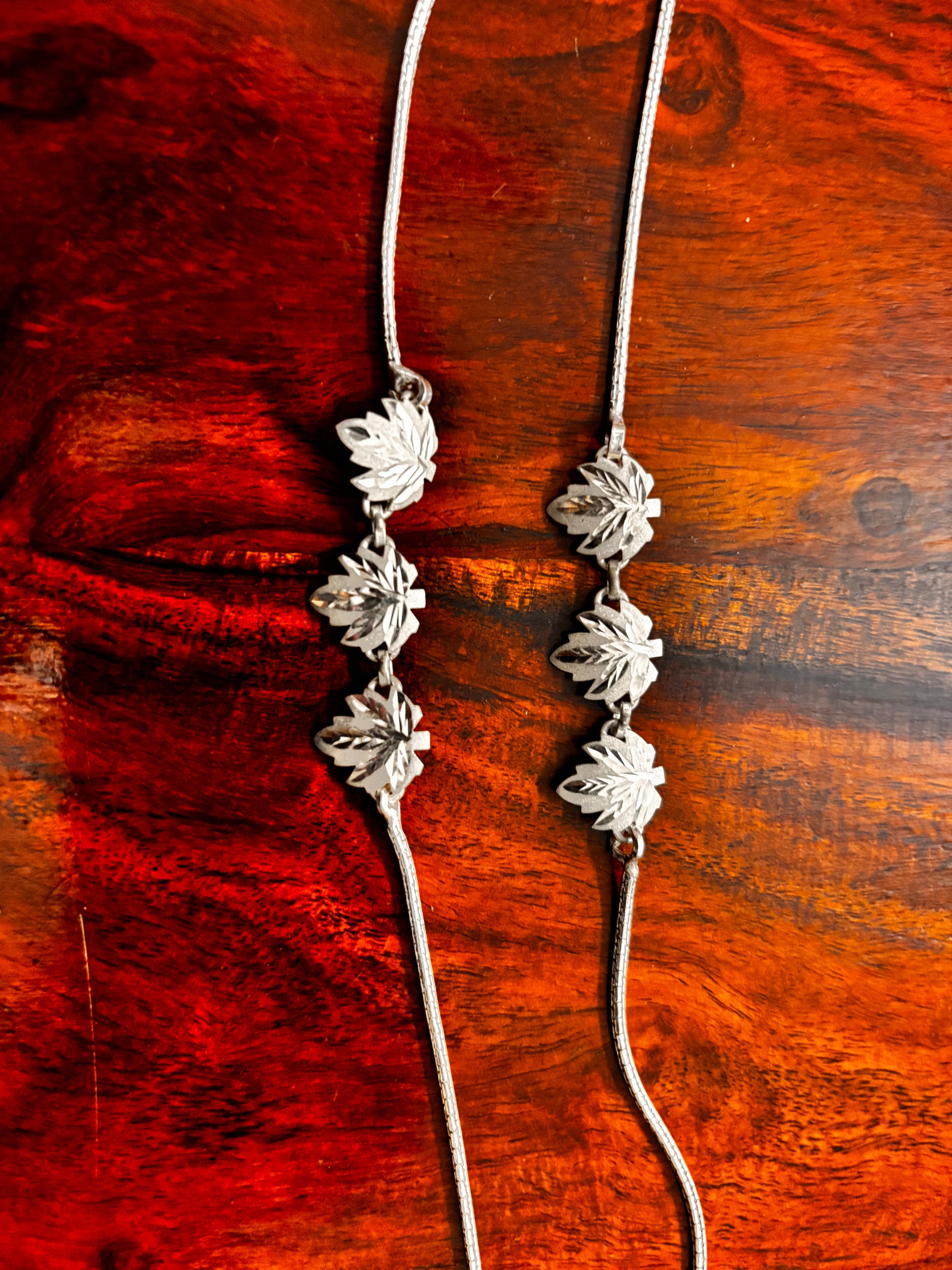 Inspired by the timeless beauty of Kashmiri Chinar leaves, this anklet is a blend of heritage and elegance. Handcrafted in 925 sterling silver, the delicate three-leaf design symbolizes growth, grace, and connection with nature.
